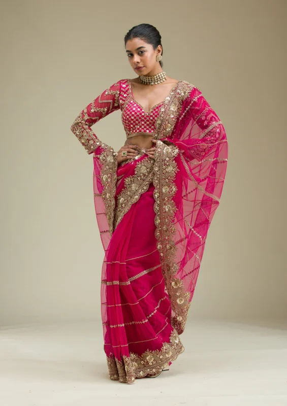 Onion Pink Mirrorwork Tissue Saree