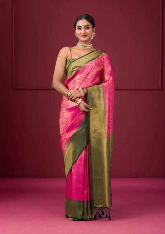 Pink Zariwork Soft Silk Saree