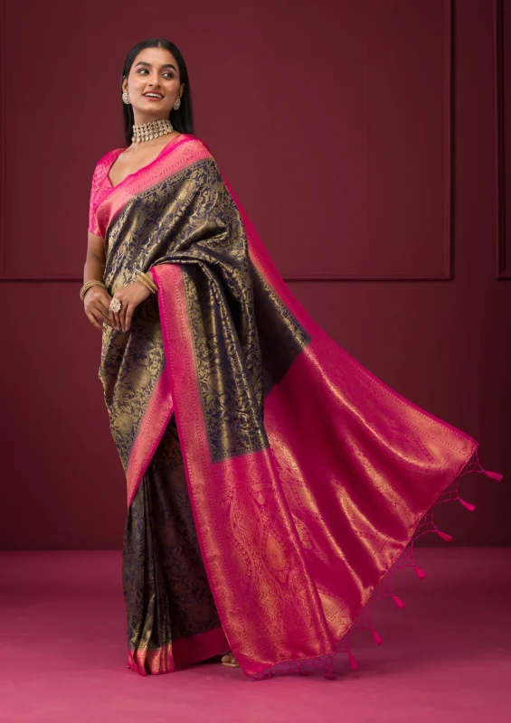 Navy Blue Zariwork Soft Silk Saree