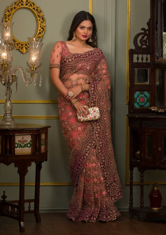Peach Zariwork Tissue Saree